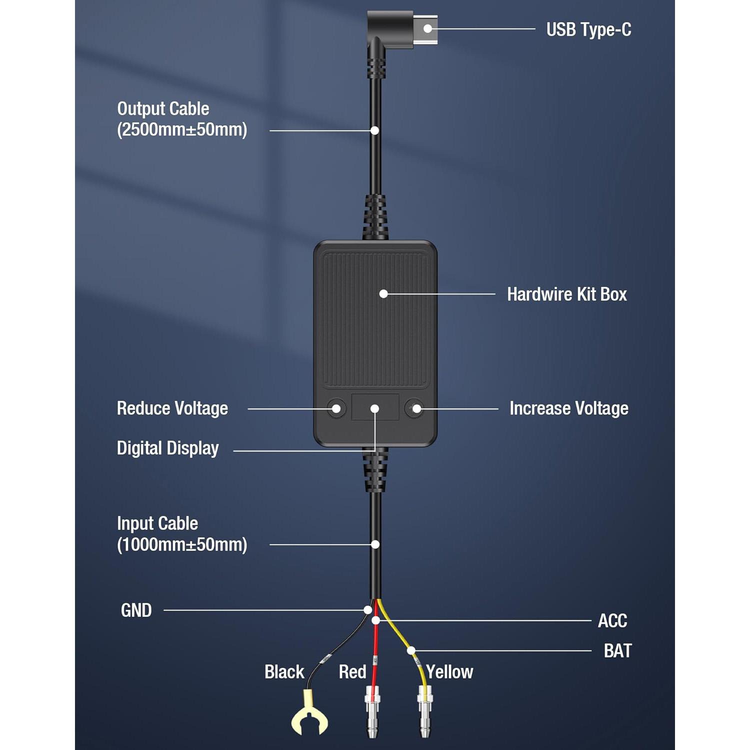 【SAFETY PROTECTION】The Type-C hardwire kit with multiple protections, such as short circuit protection, overheating protection, adjustable low voltage protection, cable reversal prevention, etc. Ensures the safe and stable operation of your dash camera and other equipment.